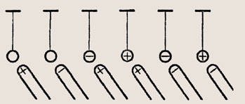 Пробковые шарики, подвешенные на нитях, заряжены. Какого знака заряды шаров (рис. 280)?