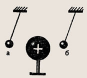 Определите знак заряда шариков, подвешенных на нитях (рис. 282).