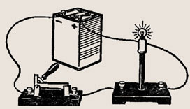 Начертите схему электрической цепи, состоящую из гальванического элемента (или аккумулятора), выключателя и электрической лампы.