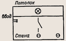 На рисунке 305 изображено расположение приборов в комнате. Начертите схему проводки (выключатель включает только лампу, розетки всегда должны быть под напряжением).