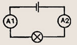 В цепь (рис. 309) включены два амперметра. Амперметр А1 показывает силу тока 0,5 А. Какое количество электричества протекает через лампу за 10 с?