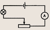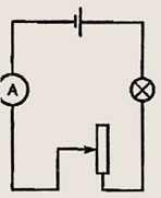 Реостат включен в цепь так, как показано на рисунке 317. Как будут изменяться показания амперметра при передвижении ползунка реостата вправо; влево? Ответ обоснуйте.