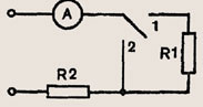 При замыкании переключателя в положение 1 (рис. 331) амперметр показывает силу тока 1 А, а в положении 2 — силу тока 4 А. Определите сопротивление каждого проводника, если напряжение на зажимах цепи 12В.