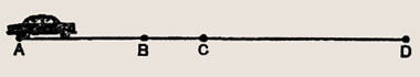 Каждый из участков пути АВ, ВС и CD автомобиль проезжает за 1 мин (рис. 25). На каком участке скорость наибольшая, на каком — наименьшая?