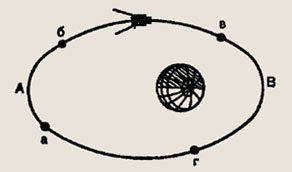 На рисунке 26 обозначена траектория движения искусственного спутника Земли. Участки траектории абивг спутник проходит за одинаковое время. На каком из них средняя скорость спутника больше?