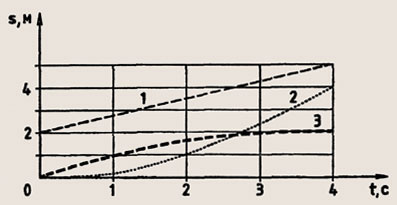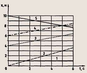 Какой из графиков на рисунке 32 соответствует равномерному прямолинейному движению, а какой равноускоренному? Можно ли однозначно утверждать, что точка пересечения графиков 3 и 5 свидетельствует о том, что в данный момент времени координаты тел совпадают?