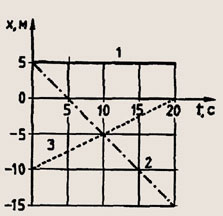 По заданным графикам (рис. 31) напишите уравнения движения x=x(t). Из уравнений и графиков найдите координаты тел через 5 с, скорости движения тел, время и место встречи второго и третьего тел.
