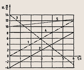 По данным графиков 1, 3, 4 (рис. 32) определите начальную скорость, приращение скорости за одну секунду, среднюю скорость движения за шесть секунд.
