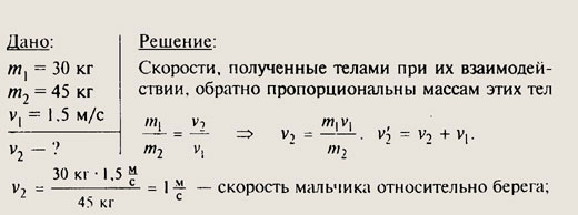 Скорость баржи, полученная в результате взаимодействия баржи и мальчика, очень мала, потому что ее масса во много раз больше массы мальчика.