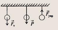 Действие сил вызвано силой тяжести шара, силой упругости шара, силы упругости нити (Земля, шар, нить).