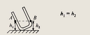 Давление воздуха и столба воды в левом сосуде, равно давлению атмосферы и столба жидкости Н1.