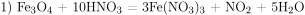 Железную окалину растворили в концентрированной азотной кислоте. К полученному раствору добавили раствор гидроксида натрия. Выделившийся осадок отделили и прокалили. Образовавшийся твёрдый остаток сплавили с железом. Напишите уравнения четырёх описанных реакций.