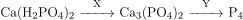Из перечисленных веществ дигидрофосфат кальция в одну стадию можно перевести в фосфат кальция при реакции с гидроксидом кальция (вещество № 1), далее его в одну стадию можно перевести в фосфор по реакции со смесью диоксида кремния и угля (вещество № 4).