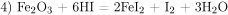 Гидрокарбонат натрия прокалили. Полученное после прокаливания твёрдое вещество растворили в воде и смешали с раствором бромида железа (III), в результате чего выпал бурый осадок и образовался газ. Осадок отделили и прокалили. Твёрдый остаток растворили в иодоводородной кислоте. Напишите уравнения четырёх описанных реакций.