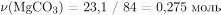 Рассчитаем количества вещества карбоната магния, оксида магния и кислоты: