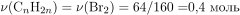 Неизвестный алкен массой 16,8 г способен присоединить 64 г брома. Определите молекулярную формулу неизвестного алкена.