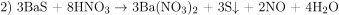 Твёрдый сульфат бария прокалили с избытком углерода. К полученному твёрдому веществу добавили разбавленную азотную кислоту. Образовавшийся раствор выпарили, сухой остаток прокалили. Твёрдый продукт прокаливания растворили в воде. Напишите уравнения четырёх описанных реакций.