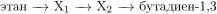 Бутадиен-1,3 можно в одну стадию получить либо из бутана, либо из этилового спирта (реакция Лебедева). Учитывая что в варианте ответов лишь в №1 в качестве Х2 стоит одно из них (этиловый спирт), его и выбираем.