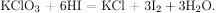 Хлор в степени окисления +5 (или хлорат калия за счёт хлора в степени окисления +5) является окислителем. Иод в степени окисления −1 (или иодоводородная кислота за счёт иода в степени окисления −1) — восстановителем.